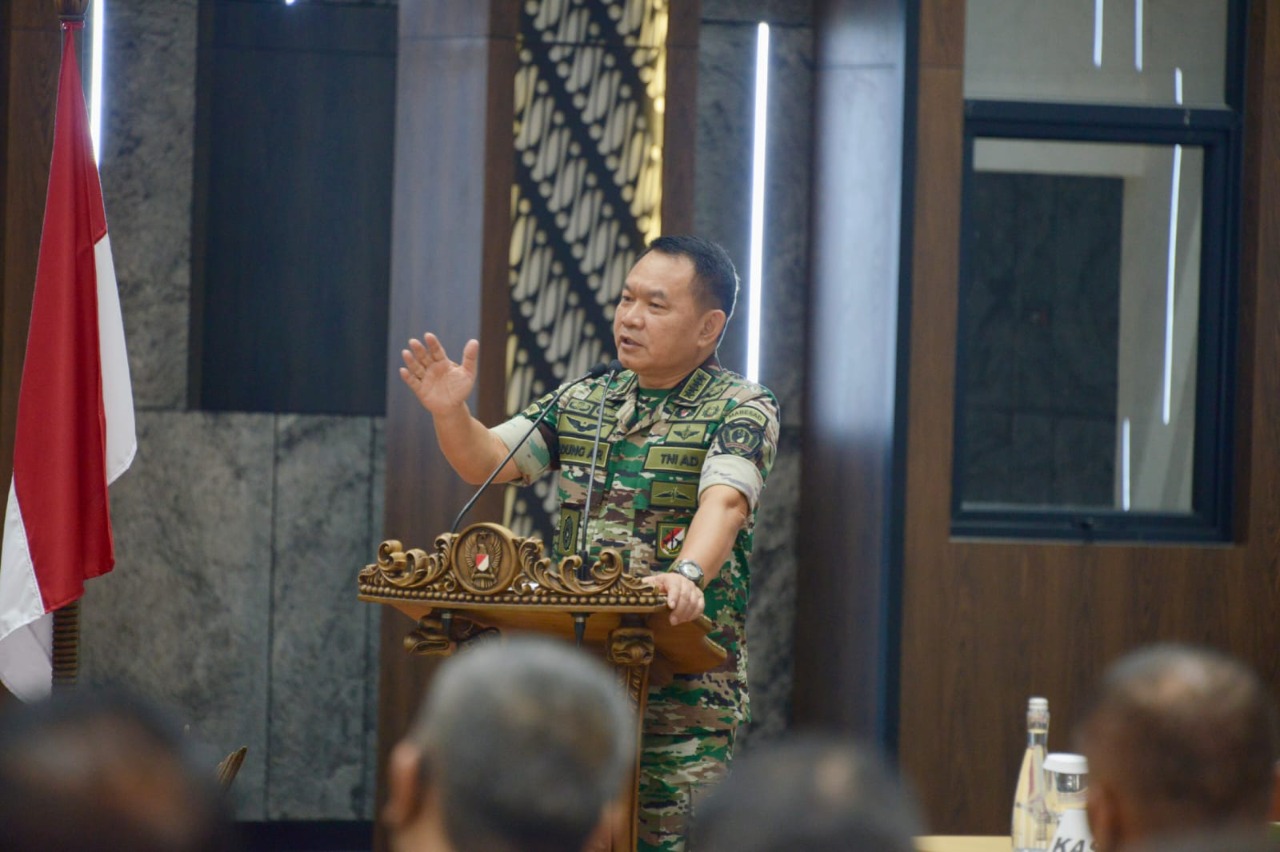 Kasad Jenderal TNI Dudung Abdurachman, S.E., M.M didepan media sampaikan Rapim TNI AD dalam rangka tindak lanjut dari Rapim TNI sebelumnya, serta evaluasi tahun 2021 dan kebijakan serta tindak lanjut penyampaian Presiden tentang situasi saat ini yang harus kita waspadai.