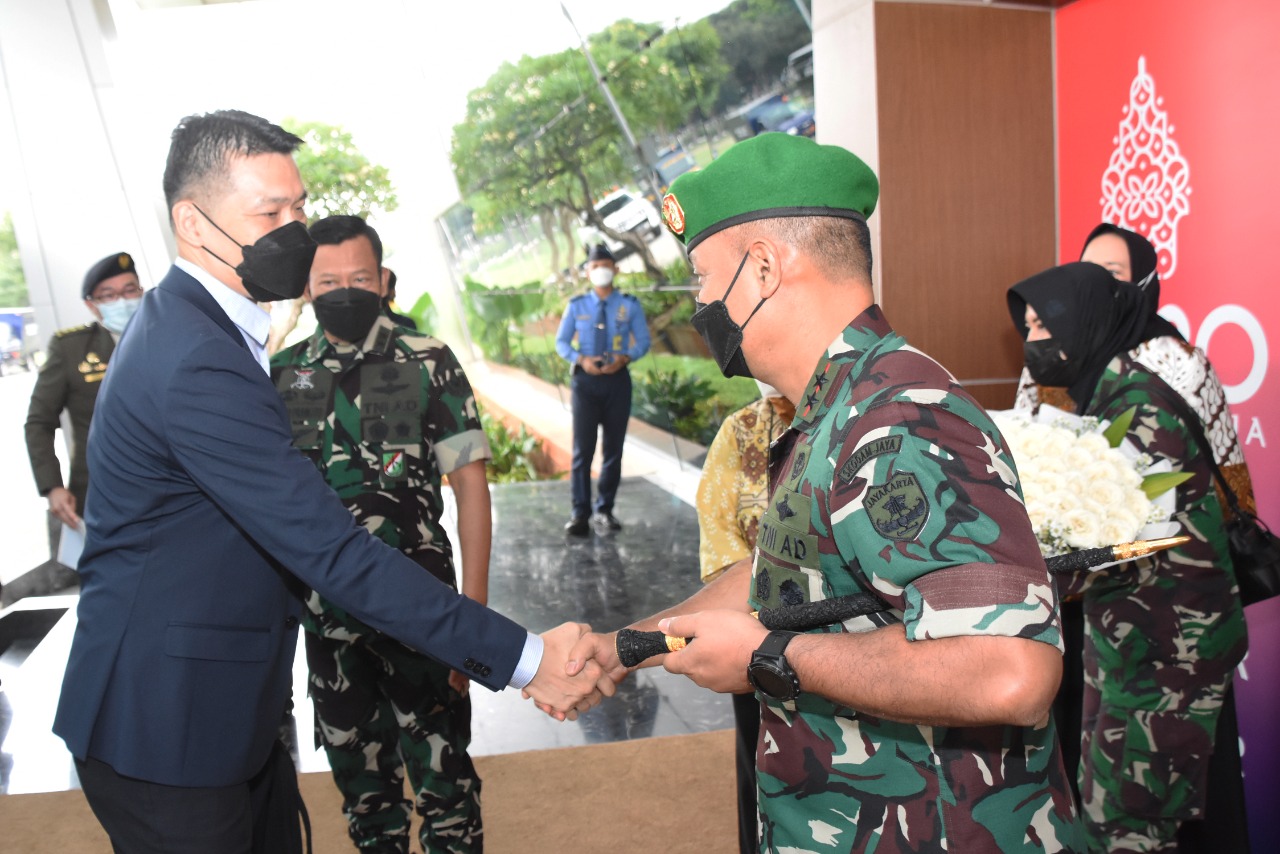 SKI | Jakarta – Pangdam Jaya/Jayakarta Mayjen TNI Untung Budiharto menyambut kedatangan Panglima AD Singapura Brigjen David Neo, bertempat di VIP Room Terminal 3 Bandara Soekarno – Hatta, Senin (8/5/22).