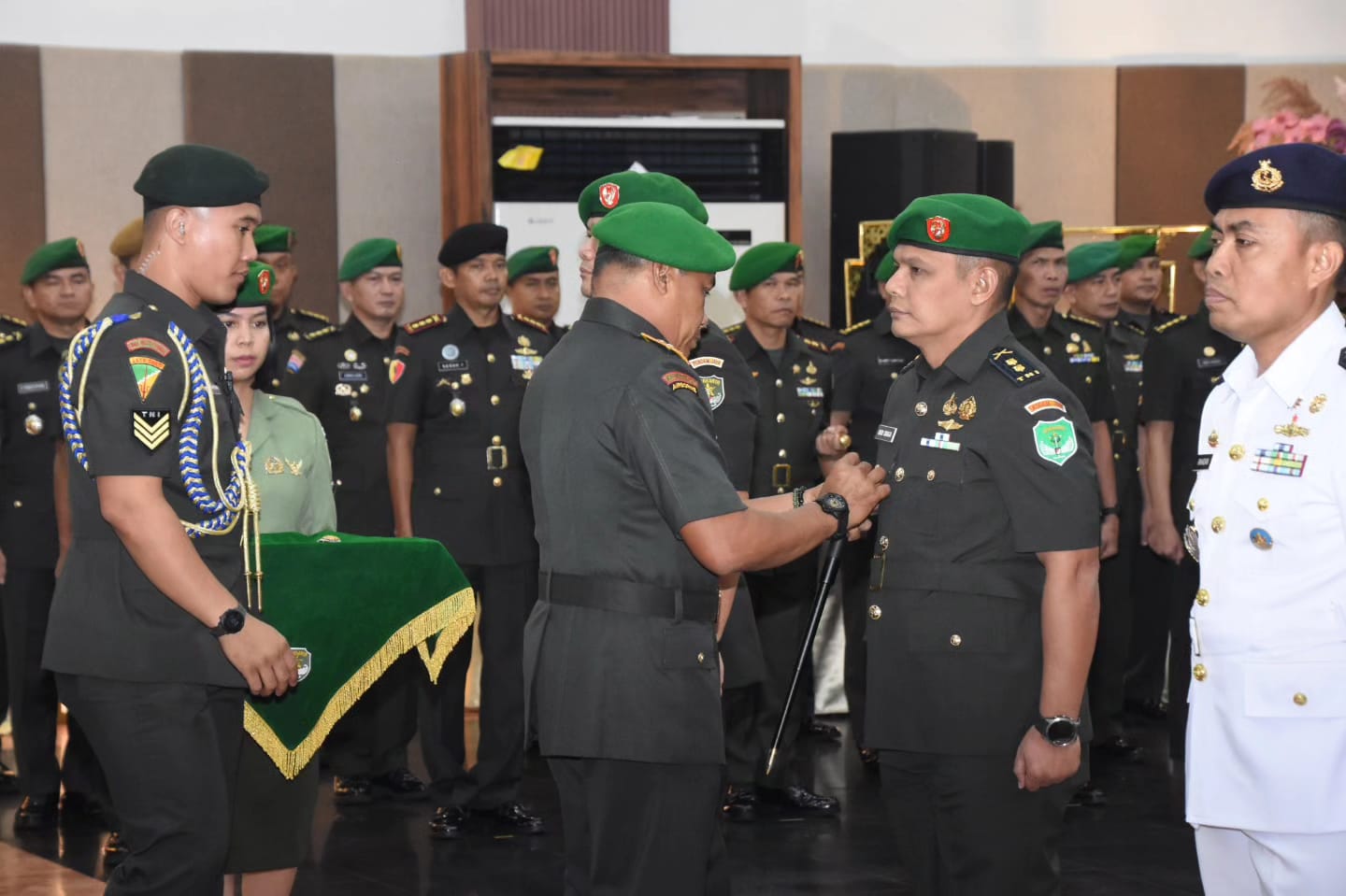 SKI | Jakarta – Pangdam Jaya Mayjen TNI Mohamad Hasan didampingi Ketua Persit KCK Daerah Jaya Ny. Ririx M. Hasan, memimpin acara tradisi korps dan Serah Terima Jabatan Pejabat Kodam Jaya/Jayakarta, bertempat di Gedung Aula Soedirman Makodam Jaya, Selasa (8/8/2023).