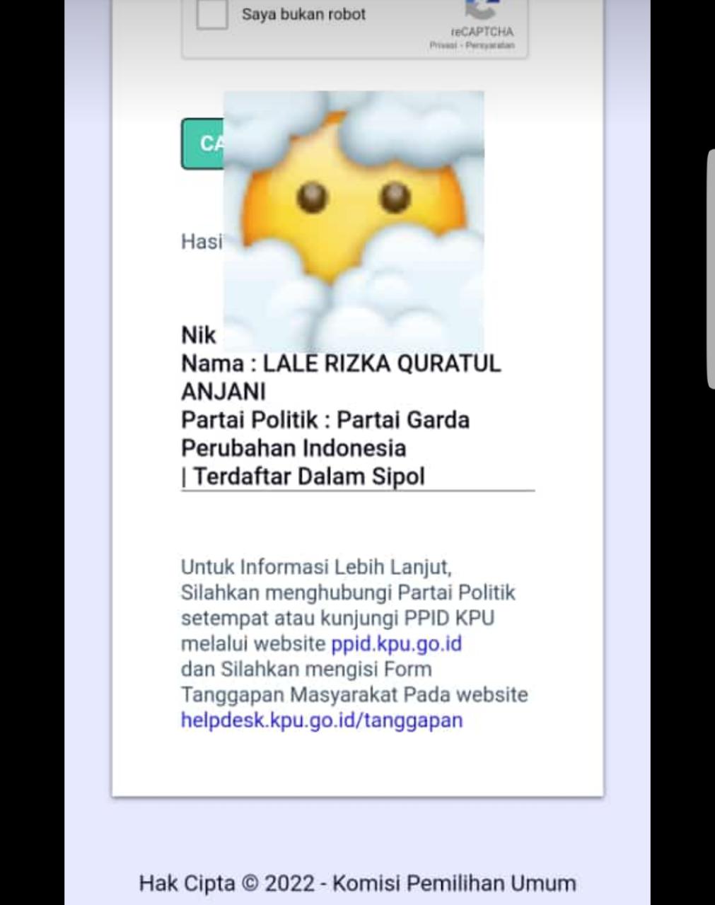 “Awalnya saya tau nama dicatut ini dari sebuah thread di twitter, disana banyak yg mengaku namanya juga di catut berbagai parpol. Setelah saya share link https://infopemilu.kpu.go.id/Pemilu/Cari_nik. Ternyata ada juga teman disini yang jadi korban pencatutan nama”paparnya.