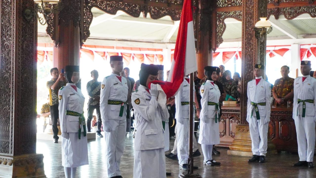 SKI | JEPARA – Sebanyak 31 calon Pasukan Pengibar Bendera Pusaka (Paskibraka) resmi dikukuhkan dalam Upacara Pengukuhan Pasukan Pengibar Bendera Pusaka (Paskibraka) Kabupaten Jepara Tahun 2023 di Pendapa R. A. Kartini, Kabupaten Jepara pada Selasa (15/8/2023). Pj Bupati Jepara Edy Supriyanta bertindak sebagai pembina upacara pengkuhan tersebut. Sedangkan pemimpin upacara pengukuhan tersebut merupakan Feiza Ekanea Putri dari SMA 1 Jepara.