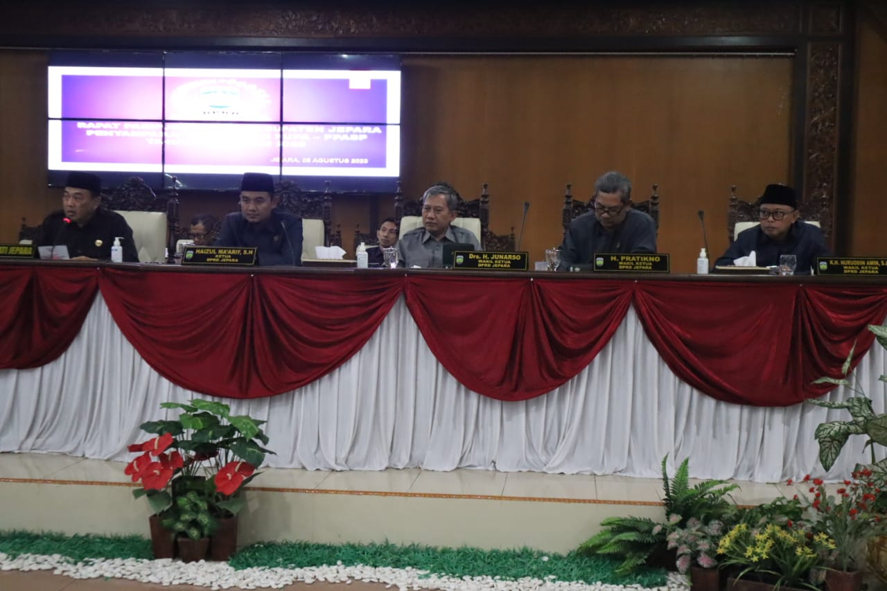 Pengajuan Perubahan KUA dan PPAS itu dilakukan dalam rapat paripurna Dewan Perwakilan Rakyat Daerah (DPRD) Kabupaten Jepara yang berlangsung Selasa (8/8/2023) siang di Ruang Graha Paripurna DPRD Kabupaten Jepara. Rapat paripurna dipimpin Ketua DPRD Haizul Ma’arif bersama tiga wakilnya, Junarso, Pratkno, dan Nuruddin Amin. Sedangkan Pj, Bupati Edy Supriyanta, hadir bersama Sekretaris Daerah (Sekda) Edy Sujatmiko bersama sejumlah kepala perangkat daerah.
