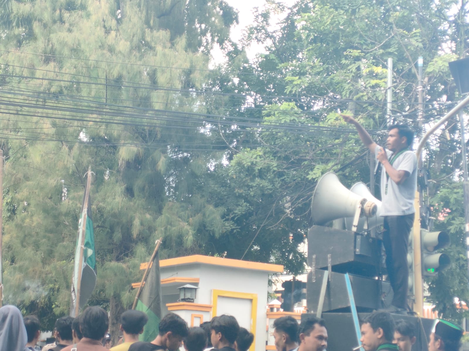 ” Masak jaspel dipinjam untuk bangun MBG ini sudah salah,” kata orator aksi secara bergantian.
