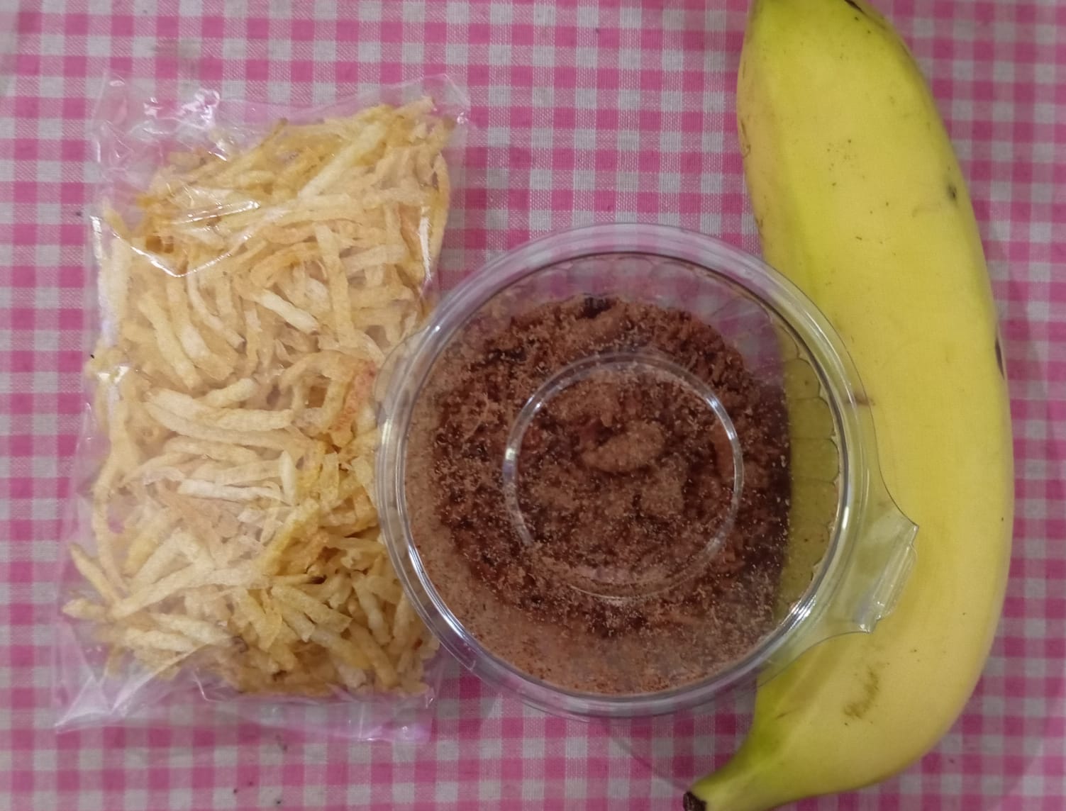 Menu yang disajikan gorengan kentang kering,abon ayam dan pisang yang nilai harganya jauh dari standar yang telah ditentukan dari Badan Gizi Nasional (BGN).