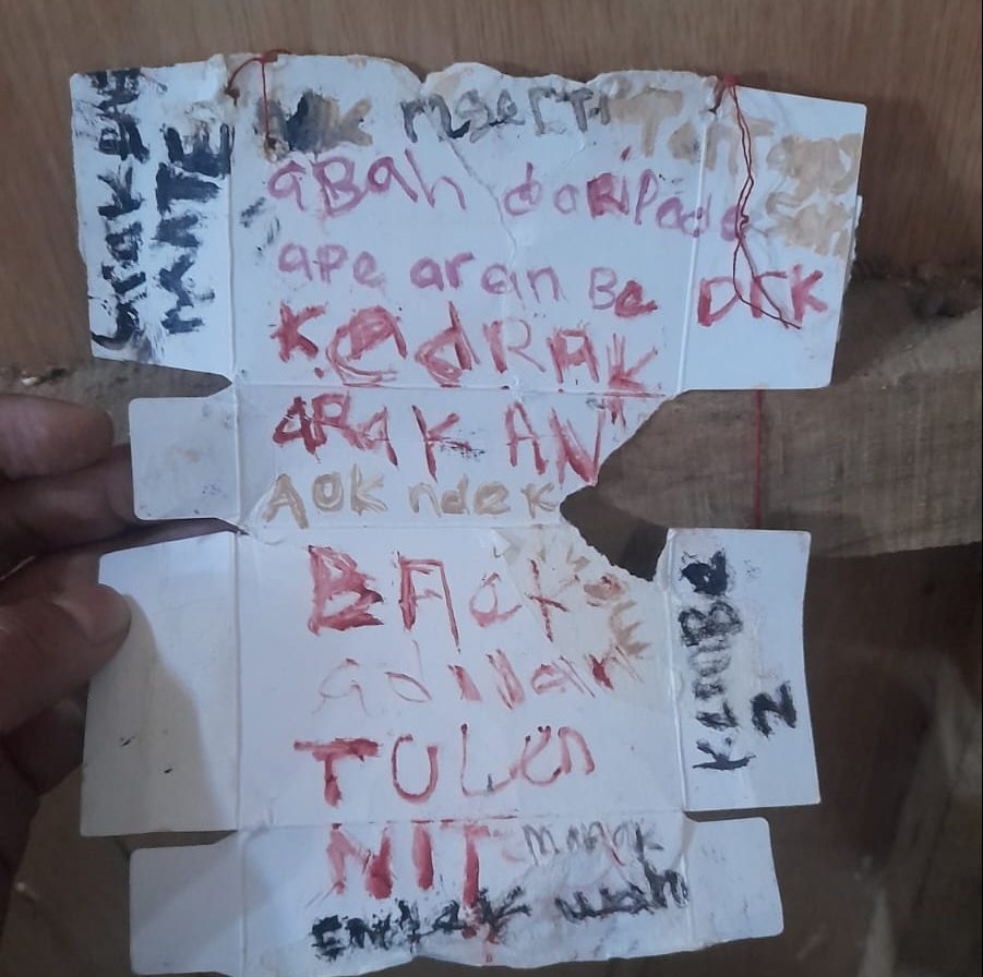 Korban mengakhiri hidupnya, diduga berkaitan dengan hutang piutang pinjaman online, bahkan sebelum mengakhiri hidupnya, korban sempat menulis surat gunakan tutup sabun menggunakan tulisan tinta merah bertuliskan sudah tidak sanggup dengan hutang dan akhiri hidup dengan bunuh diri.