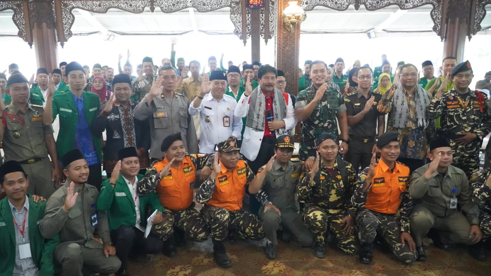 SKI | JEPARA – Penjabat Bupati Jepara Edy Supriyanta menyatakan jika Pancasila menjadi fondasi yang kuat untuk menyatukan dan melindungi keberagaman yang ada. Pancasila, kata Edy, menjadi ideologi, cara berfikir kolektif seluruh anak bangsa untuk merajut keberagaman yang ada untuk tetap terhubung dalam bingkai NKRI. Hal ini disampaikan oleh Edy saat Sosialisasi Pembinaan Ideologi Pancasila yang diselenggarakan oleh Badan Pembinaan Ideologi Pancasila (BPIP) bersama Gerakan Pemuda (GP) Ansor Jepara di Pendapa Kartini, Rabu (7/6/2023).