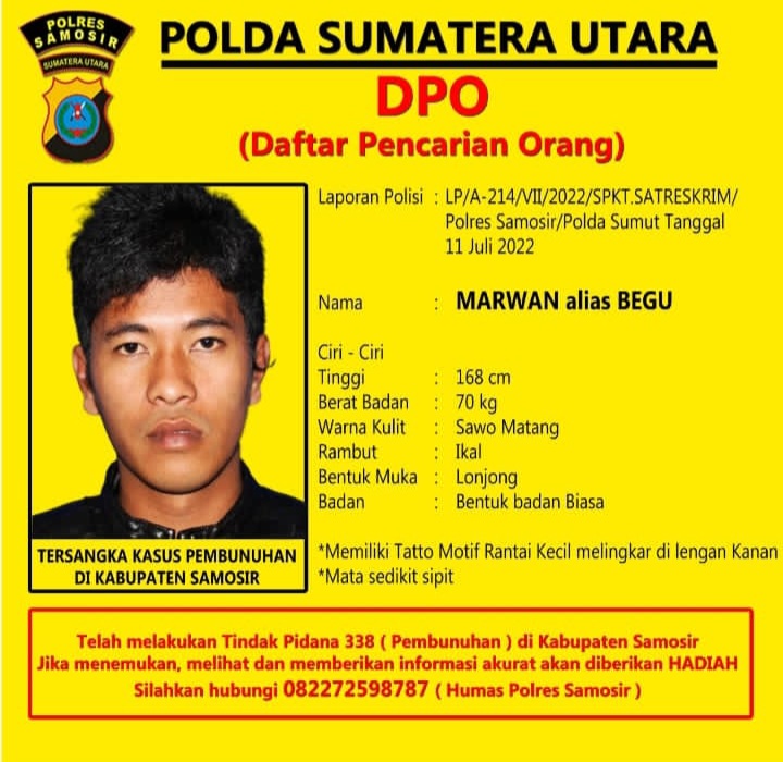 Tersangka masuk dalam Daftar Pencarian Orang (DPO) Kepolisian Daerah Sumatera Utara. Tersangka bernama Marwan alias Begu. Sebenarnya, Marwan merupakan teman lama korban yang datang dijemput. Dia menumpang hidup dan tinggal bersama korban baru sekitar 3 minggu.