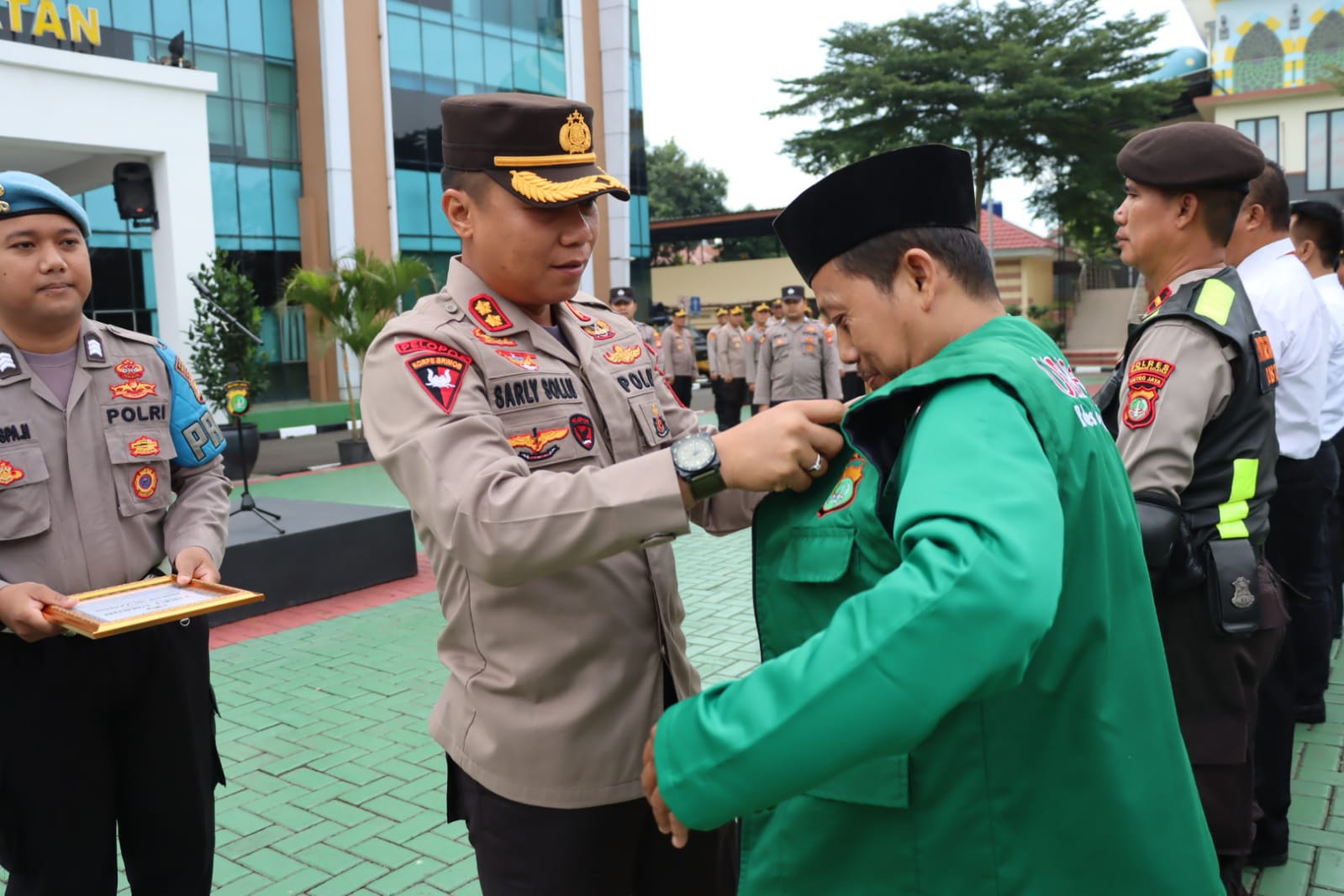 Tiket umroh kali ini diberikan kepada Himam Muzzahir (Da’i Kamtibmas Polres Tangsel) yang diberikan langsung oleh Kapolres Tangsel AKBP Sarly Sollu, S.I.K., M.H. pada apel pemberian penghargaan personel di lapangan apel Polres Tangsel, rabu (10/1) pagi.