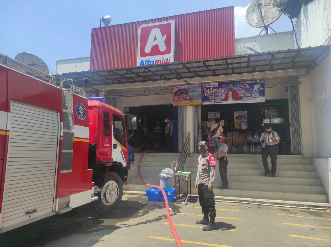 Ternyata gudang Alfamidi sudah terbakar, diduga kebakaran terjadi akibat korsleting listrik yang menyebabkan kepulan asap dan percikan api.