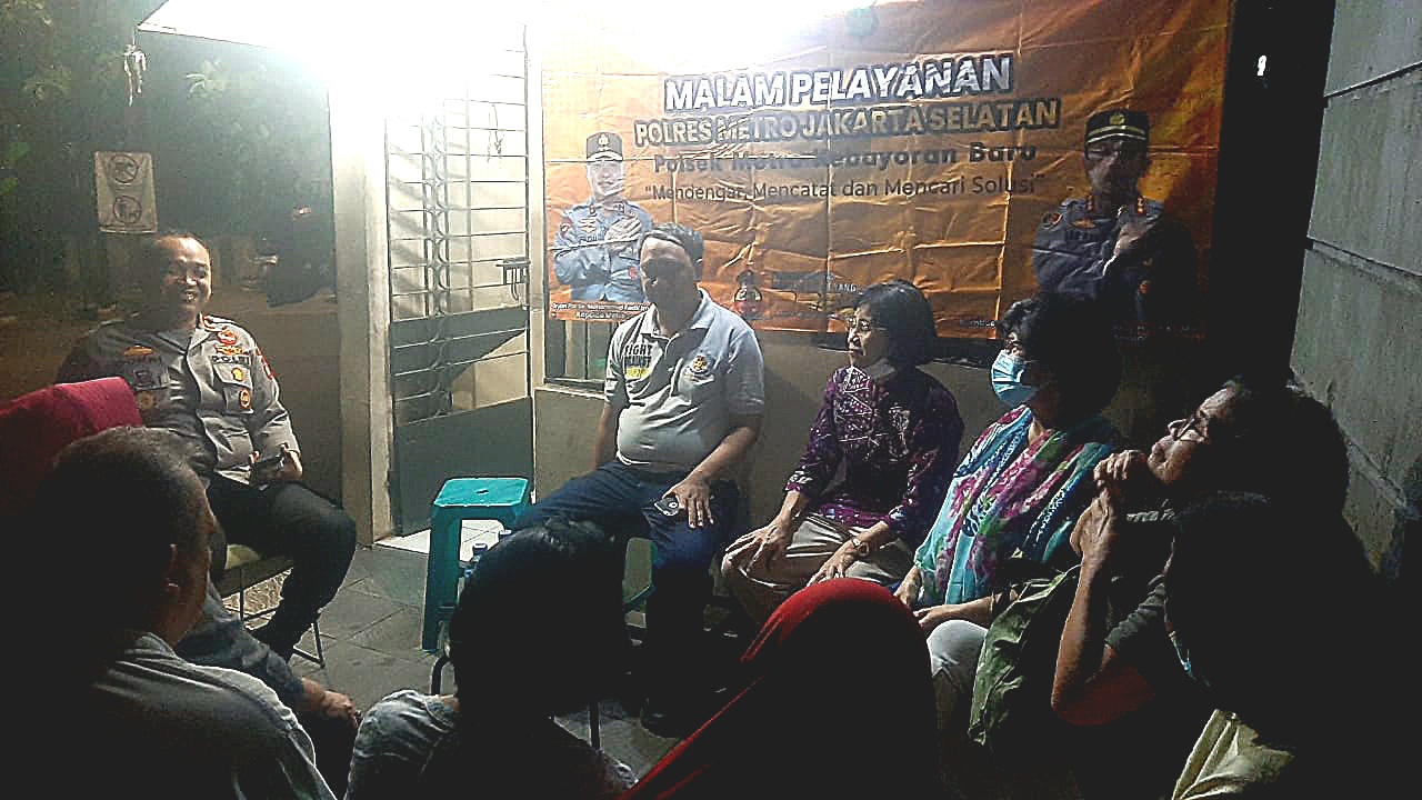 SKI | Jakarta – Polsek Metro Kebayoran Baru melaksanakan giat malam pelayanan Polres Jaksel diwilayah hukum Polsek kebayoran baru yang di hadiri langsung oleh Kapolsek Metro Kebayoran Baru, Doni Bagus Wibisono,SE serta turut hadir Ipda Hasan, Bhabinkamtibmas Kel Rawa Barat, Ibu Husni (Ketua RW 03), Para Rt Se RW. 03 dan Warga, di Jl Cibeber I RT.4/03 Kelurahan Rawa Barat Kebayoran Baru, senin (16/01/23).