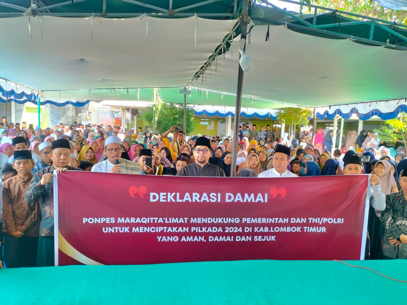 SKI | Lotim – Yayasan Pondok Pesantren Marakittaklimat menggelar deklarasi dalam Pilkada tahun 2024.Dengan langsung dipimpin pimpinan Ponpes Marakittaklimat,TGH Hazmi Hamzar dengan dihadiri pengurus dan ratusan jamaah Maraqittaklimat.