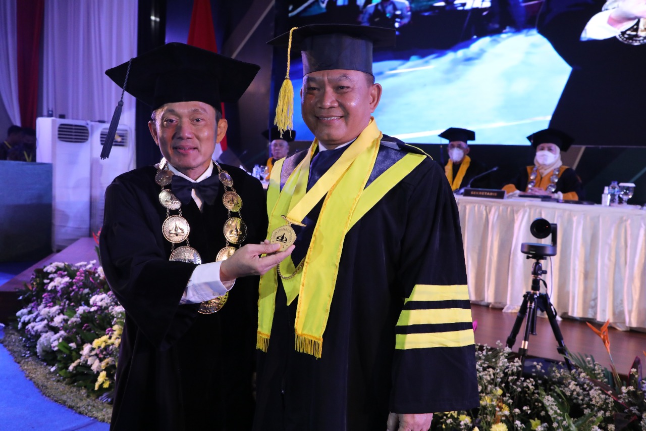 SKI | Jakarta – Kepala Staf TNI Angkatan Darat Jenderal TNI Dudung Abdurachman, S.E., M.M., dinyatakan lulus dan resmi sandang gelar doktor secara cum laude. Pernyataan resmi disampaikan oleh Prof. Dr. Ir. Kadarsah Suryadi, DEA, Rektor Universitas Trisakti yang sekaligus bertindak sebagai Ketua Dewan Penguji, dalam Sidang Terbuka Promosi Doktor Ilmu Ekonomi Universitas Trisakti yang digelar di Gelanggang Mahasiswa Universitas Trisakti, Jakarta, Sabtu (11/6/2022).