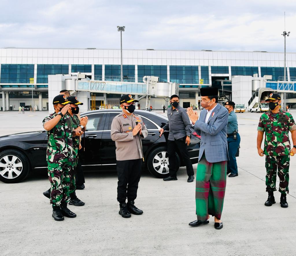 SKI|Tangerang-Presiden Joko Widodo pada Senin, 31 Januari 2022, bertolak menuju Provinsi Kalimantan Timur untuk melakukan kunjungan kerja. Dengan menggunakan Pesawat Kepresidenan Indonesia-1, Presiden yang mengenakan setelan jas dan peci, serta sarung bermotif hijau merah lepas landas dari Bandar Udara Internasional Soekarno-Hatta, Tangerang, Banten, sekitar pukul 07.00 WIB.