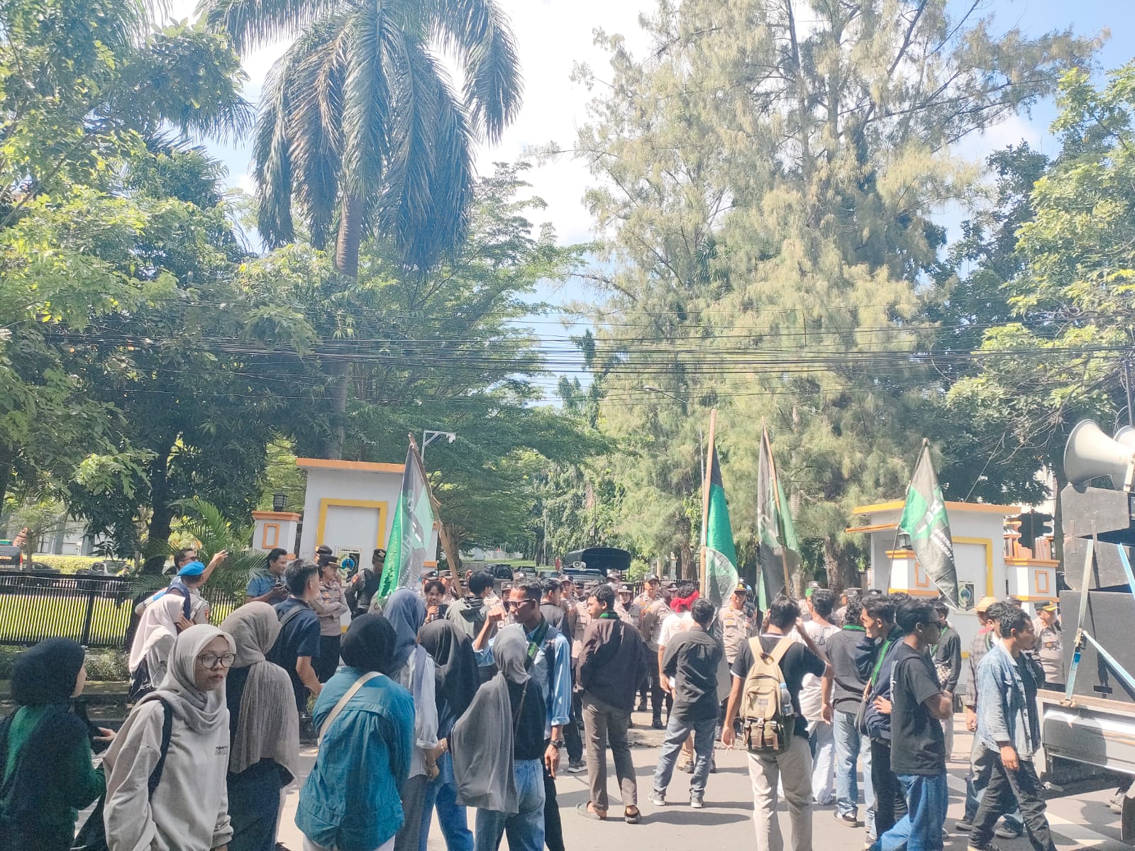 Aksi yang mendapatkan pengawalan ketat dari aparat kepolisian berjalan tertib meskipun dari pejabat tidak ada yang menerima aksi mahasiswa.