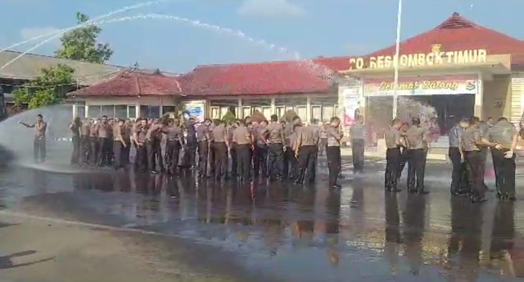 SKI | Lotim – Puluhan personel Polres Lombok Timur disiram pakai air Waterconan milik Polres Lotim,Selasa (2|1). Personel yang disiram tersebut dengan pangkat dari Bintara dan Perwira yang merupakan tradisi atas kenaikan pangkatnya.