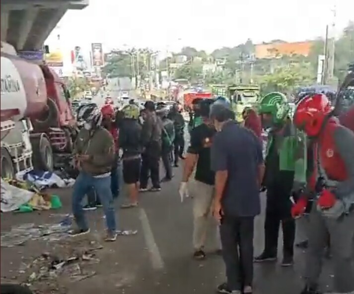 Diduga karena beratnya muatan dan beban menyebabkan rem menjadi blong sehingga sopir tdk dapat megendalikan truknya dan menabrak kendaraan yang ada didepan serta sebelahnya ikut tertabrak pula, tidak kurang dari 10 unit sepeda motor ikut terlindas dan 1 unit minibus ikut tertabrak mobil tangki tersebut.