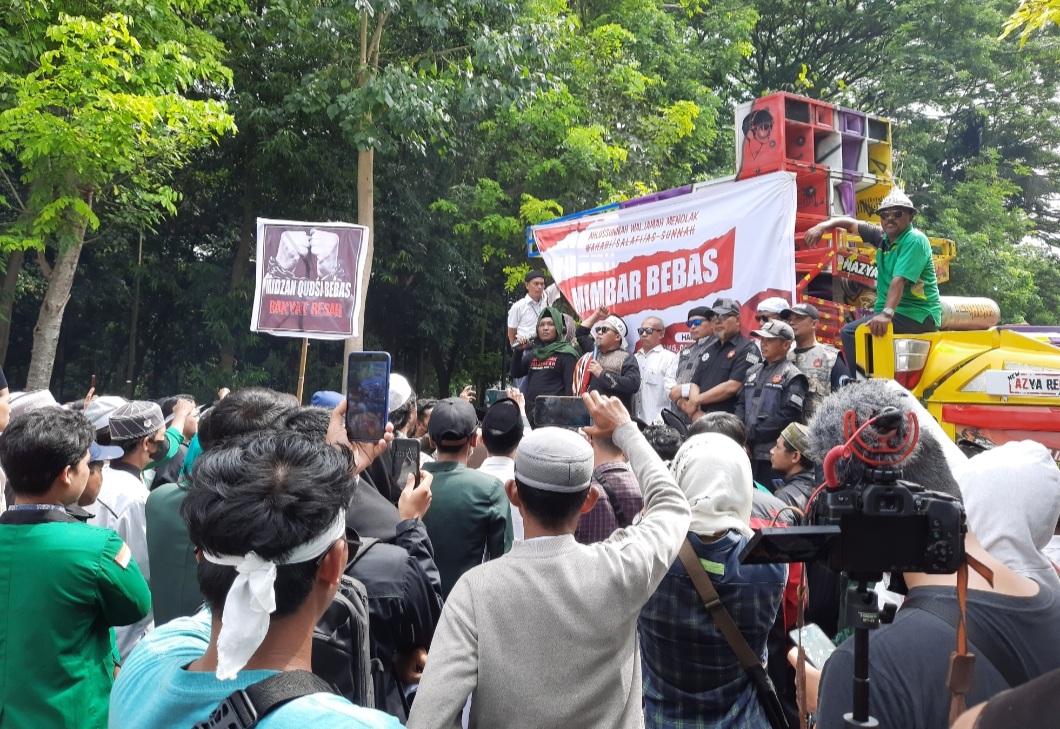 Kemudian Koordinator umum aksi,Ustaz Ahmad Asdaruddin dalam orasinya meminta agar pihak kepolisian untuk memproses oknum ustaz MQ tersebut dengan perkataan dalam vidio yang viral dianggap sangat meresahkan masyarakat.