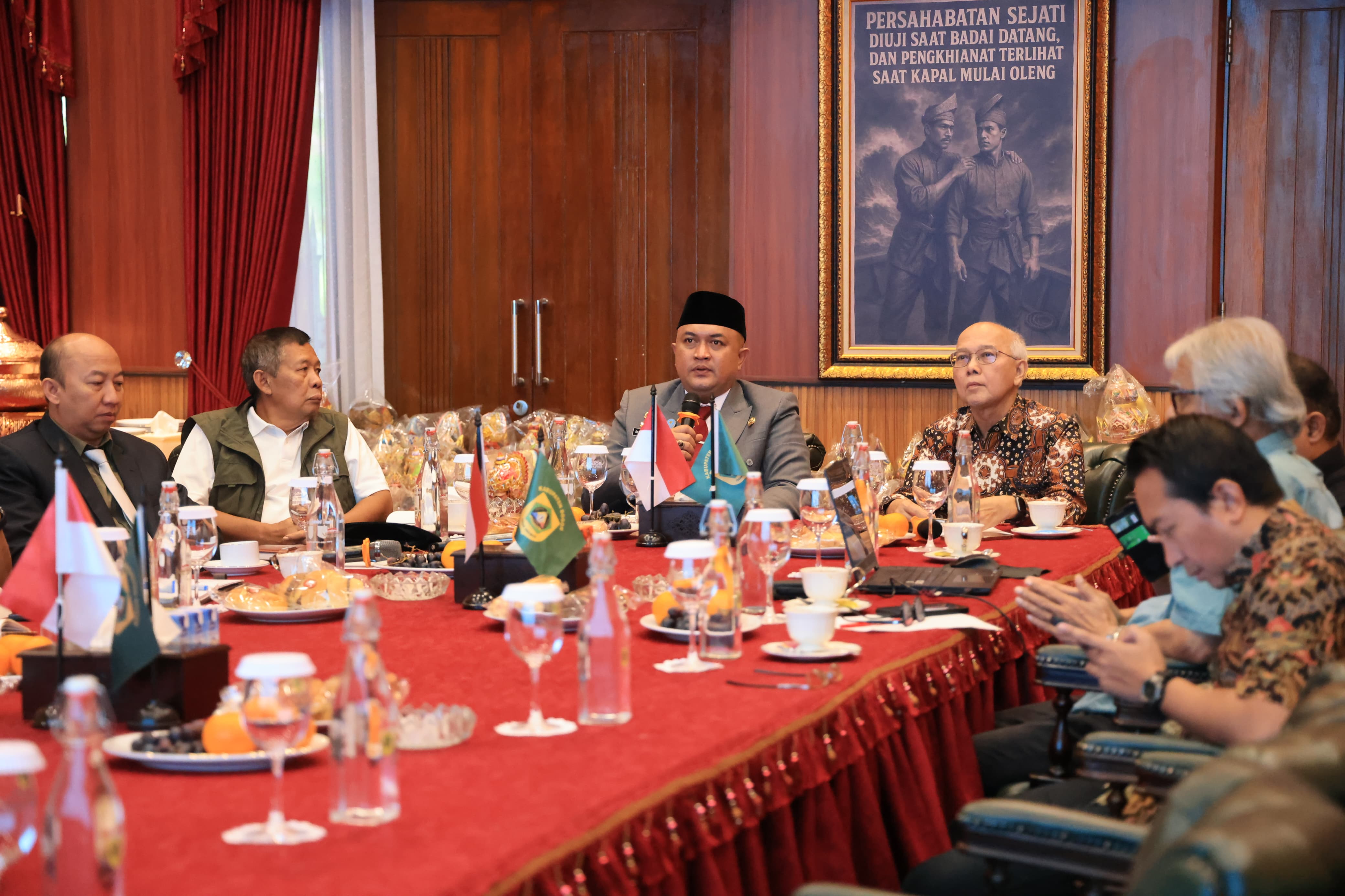 SKI CIBINONG – Bupati Bogor, Rudy Susmanto terus mematangkan langkah strategis dalam rangka persiapan pemekaran wilayah Kabupaten Bogor Timur (KBT) dengan menyiapkan pusat pertumbuhan ekonomi baru sekaligus calon ibu kota KBT serta langkah-langkah strategis lainnya. Hal tersebut disampaikan dalam pertemuan bersama jajaran pemangku kepentingan terkait, di Pendopo Bupati Bogor, Cibinong, Jumat (19/12). Dengan langkah-langkah tersebut, Pemerintah Kabupaten (Pemkab) Bogor optimistis bahwa persiapan pemekaran Kabupaten Bogor Timur tidak hanya sebatas wacana administratif, tetapi telah bergerak secara nyata melalui pembangunan dan penyiapan kawasan strategis sebagai pusat pertumbuhan ekonomi baru di wilayah Timur Kabupaten Bogor. Bupati Bogor, Rudy Susmanto menegaskan bahwa pendekatan yang ditempuh saat ini berbeda dengan tahun-tahun sebelumnya. Tidak hanya menitikberatkan pada aspek administratif, Pemkab Bogor justru memulai langkah nyata melalui pembangunan fisik dan penyiapan infrastruktur sebagai bukti kesiapan wilayah Bogor Timur untuk menjadi daerah otonomi baru. “Pemerintah Pusat akan melihat dua hal utama, yakni potensi wilayah dan kesanggupan fiskal daerah. Oleh karena itu, kita memulai pembangunan terlebih dahulu agar kesiapan Kabupaten Bogor Timur dapat terlihat secara nyata,” ujar Rudy. Rudy menjelaskan, salah satu langkah konkret yang telah dilakukan adalah penandatanganan nota kesepahaman (MoU) serah terima lahan dengan pihak terkait, yang direncanakan menjadi pusat pertumbuhan ekonomi baru wilayah Timur. Sekaligus masuk dalam kawasan daerah persiapan calon ibu kota Kabupaten Bogor Timur di Kecamatan Sukamakmur. “Tahapan persiapan telah dimulai, Fokus awal diarahkan pada pembukaan dan peningkatan akses jalan utama, yang merupakan aset milik Pemerintah Provinsi Jawa Barat. Melalui kerja sama dan MoU dengan Pemerintah Provinsi Jawa Barat, pembangunan jalan tersebut dapat ditindaklanjuti oleh Pemkab Bogor,” jelas Rudy. Rudy melanjutkan, Pemkab Bogor juga telah menyusun tahapan pembangunan secara bertahap dan terukur. Target tersebut ditetapkan agar pembangunan infrastruktur utama dapat diselesaikan sebelum memasuki periode agenda nasional. Dalam jangka menengah hingga panjang, pembangunan kawasan ini ditargetkan mencapai sekitar 70 hingga 80 persen. “Dengan kepastian bahwa pada tahap awal lokasi calon ibu kota Kabupaten Bogor Timur telah memiliki akses jalan serta infrastruktur penunjang yang memadai,” kata Rudy. Ia menuturkan, Pemkab Bogor juga merencanakan pembangunan jalan baru sepanjang kurang lebih lima kilometer sebagai akses langsung menuju lokasi calon ibu kota Bogor Timur.Tokoh Bogor Timur, Burhanudin mengatakan, kami menilai langkah yang dilakukan Bapak Bupati sangat strategis. Terdapat setidaknya tiga proyek besar yang akan mulai direalisasikan, di antaranya pembukaan dan peningkatan akses jalan, pengembangan pusat kegiatan yang telah memiliki dukungan anggaran, serta pembangunan koridor Puncak Dua tahap awal.“Pembangunan infrastruktur ini bukan hanya memberikan manfaat bagi satu pihak, tetapi juga membuka akses secara menyeluruh,” kata Burhanudin.Ia memaparkan, dengan terbukanya akses, percepatan pengembangan kawasan dan kegiatan ekonomi akan lebih mudah terwujud. Pemerintah daerah diharapkan tetap berperan sebagai fasilitator, tanpa membebani APBD secara berlebihan.“Melalui skema kerja sama yang tepat, percepatan pembangunan dapat dilakukan, sekaligus mendorong tumbuhnya aktivitas ekonomi dan investasi di kawasan tersebut,” paparnya.Burhanudin menambahkan, secara garis besar, apa yang disampaikan Bapak Bupati menegaskan bahwa pengembangan kawasan ini bukan sekadar wacana, melainkan akan langsung masuk pada tahap pelaksanaan nyata.“Dengan demikian, pada tahap awal ke depan, fokus utama adalah memulai eksekusi pembangunan akses dan infrastruktur pendukung secara bertahap dan terukur,” pungkas Burhanudin.(TIM KOMUNIKASI PUBLIK / DISKOMINFO KABUPATEN BOGOR)