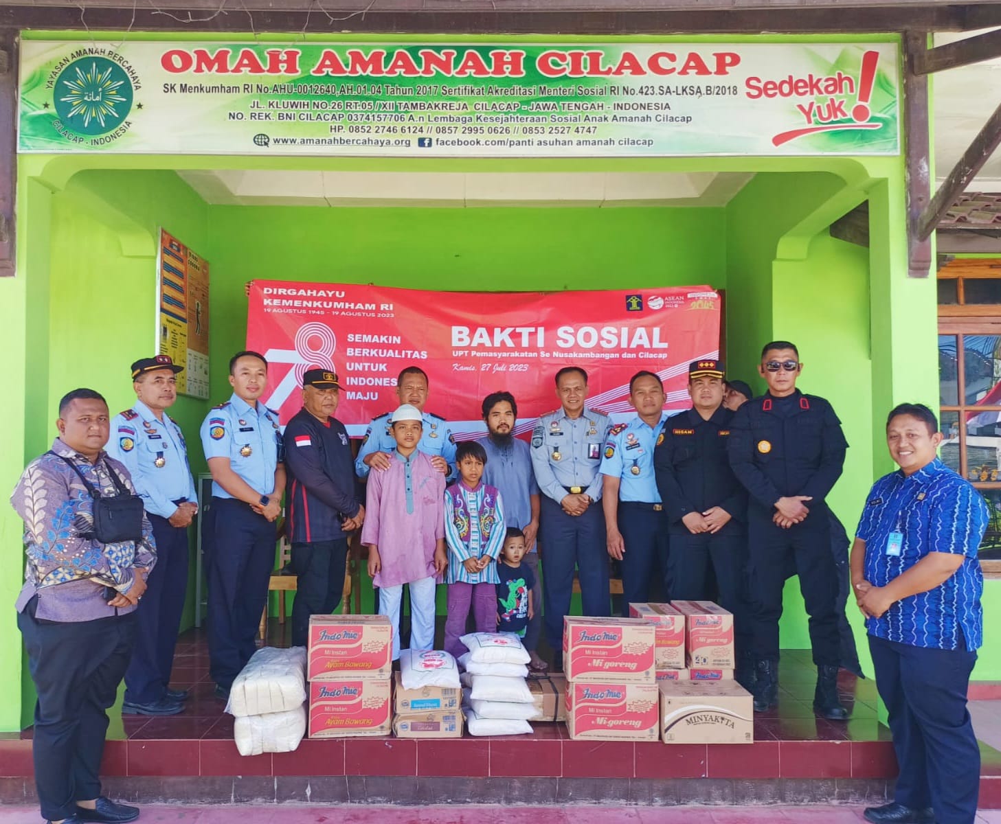 SKI | Nusakambangan – Dalam rangka memperingati Hari Dharma Karya Dhika (HDKD) ke-78, Unit Pelaksana Teknis se-Nusakambangan dan Cilacap menggelar kegiatan Bakti Sosial. Bantuan yang diberikan berupa paket nutrisi tambahan kepada anak-anak untuk mengentaskan stunting, bertempat di Panti Asuhan Omah Amanah, Kamis (27/07/2023).