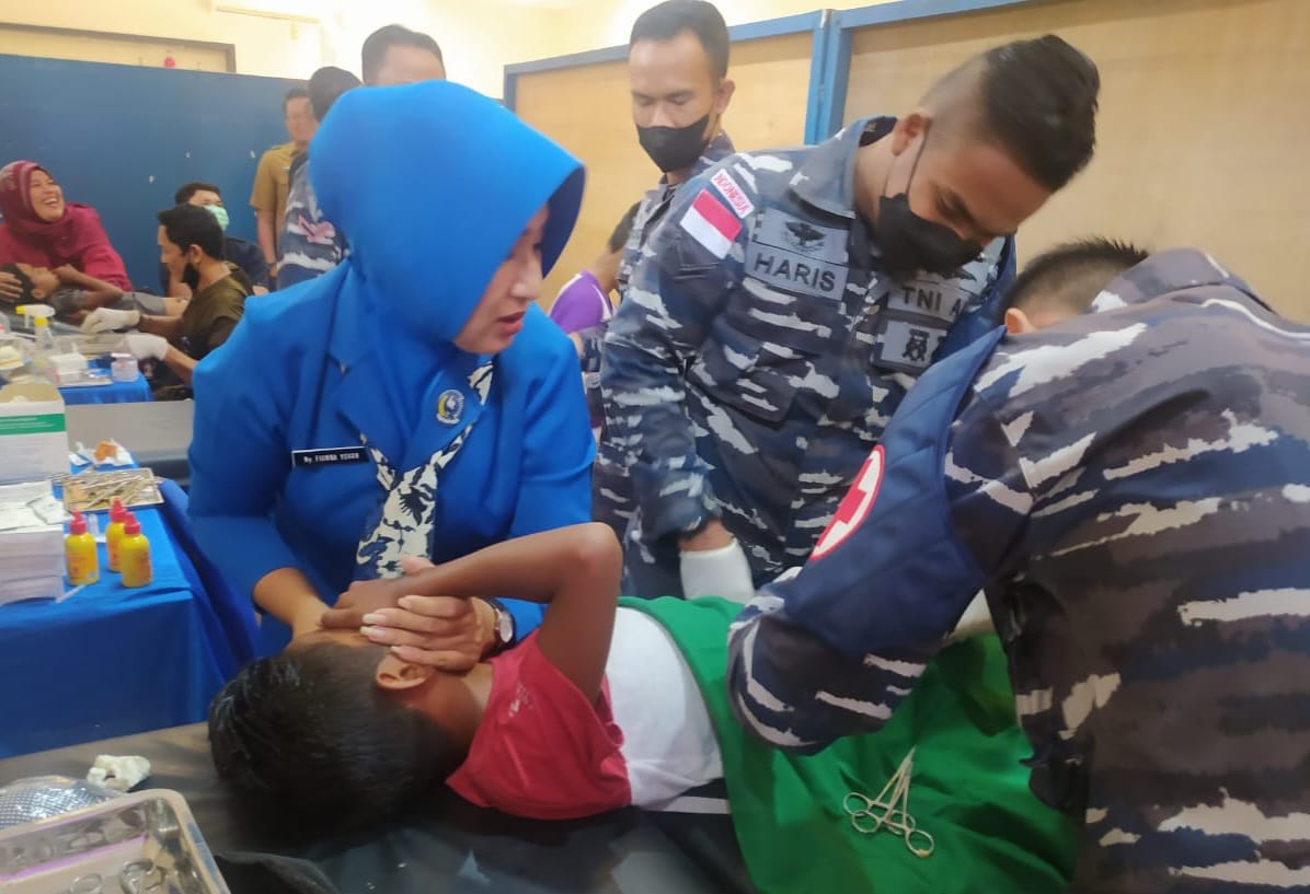SKI, Kepulauan Anambas,- Dalam rangka peringatan Hari Ulang Tahun ke-77 TNI Angkatan Laut Tahun 2022 yang jatuh pada tanggal 12 September, Komandan Pangkalan TNI Angkatan Laut Tarempa Letkol Laut (P) Yovan Ardhianto Yusuf, S.E., M.Tr. Opsla. menyelenggarakan Bhakti Kesehatan berupa Khitanan Massal dan Pengobatan Gigi di Gedung Napoleon dan Balai pengobatan Lanal Tarempa, Jalan Kartini, Kelurahan Tarempa, Kecamatan Siantan, Kabupaten Kepulauan Anambas, Selasa (06/09/2022).