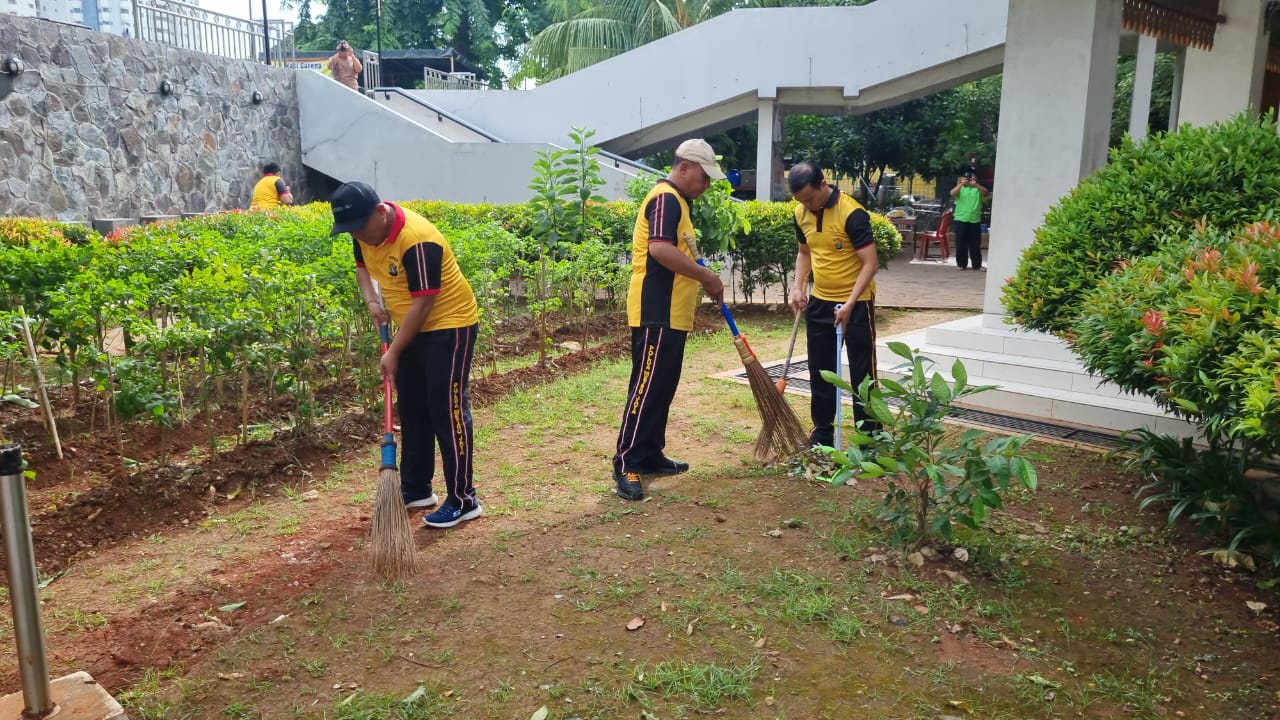 Dengan bersenjatakan sapu, kain pel, selang, ember, dan peralatan pembersih, personil Polsek Tambora sigap membersihkan setiap sisi masjid yang dirasa kurang bersih.