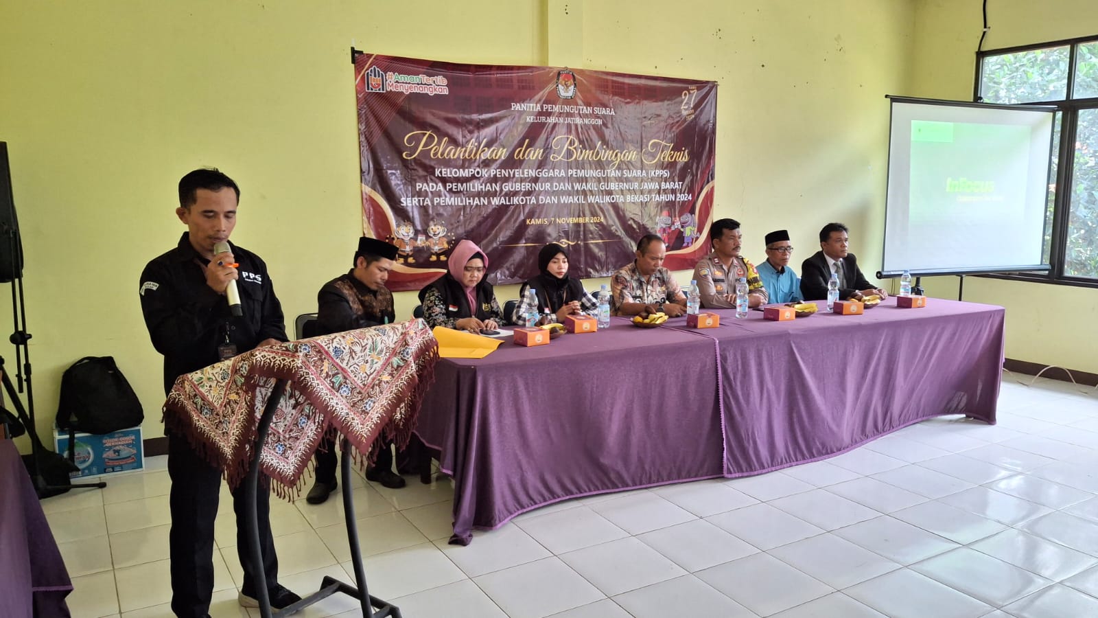 SKI | Bekasi – Sebanyak 294 anggota KPPS,kelurahan Jatiranggon dilantik dan dilanjutkan pelaksanaan Bintek yang dilaksanakan Kelompok penyelengara Pemungutan suara (KPPS ) pemilihan Gubernur dan Wakil Gubenur Jawa Barat serta Pemilihan Walikota Dan Wakil walikota Bekasi Tahun 2024 . Yang dilaksanakan di aula kelurahan Jatiranggon Pada Kamis (7/11/24).