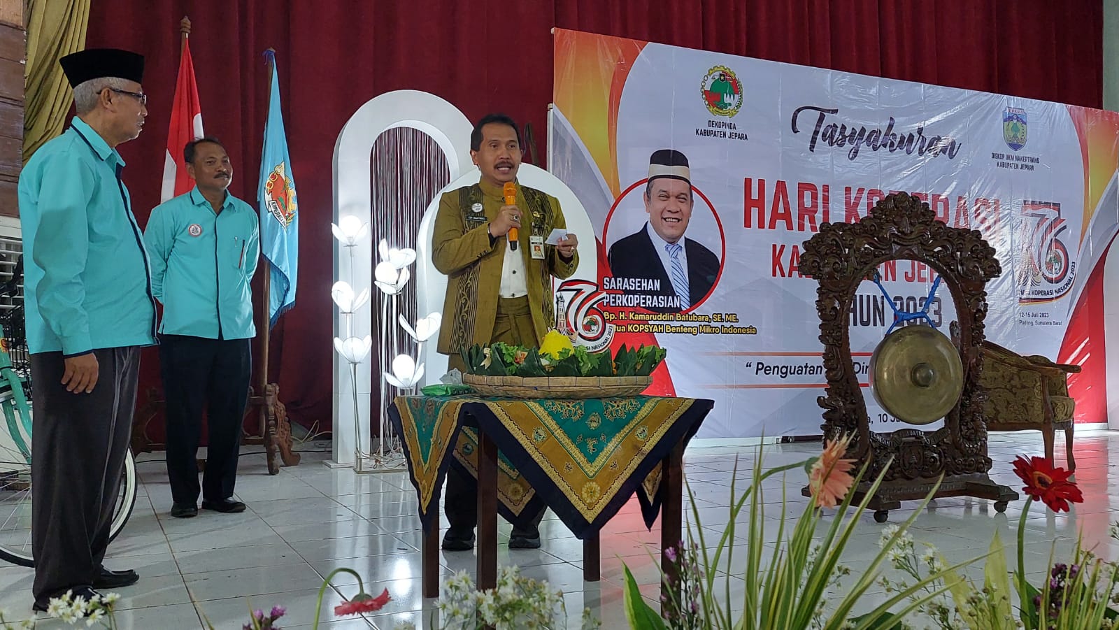 SKI | Jepara – Gerakan Koperasi Indonesia merayakan hari jadinya pada 12 Juli, Hari Koperasi Nasional (Harkopnas) yang ke-76. Usia yang menandakan kematangan dalam berorganisasi dan kemampuan menjawab berbagai tantangan zaman. Sebagai rasa syukur, Pemerintah Kabupaten Jepara melalui Dinas Koperasi, Usaha Kecil Menengah, Tenaga Kerja dan Transmigrasi (Diskop UKM Nakertrans) menggelar acara Tasyakuran di Gedung Wanita Jepara, Senin (10/7/2023).