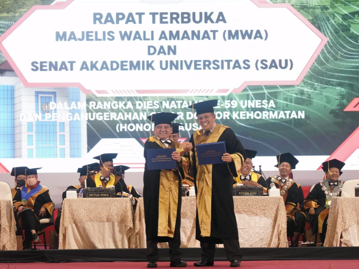 Wisuda penganugerahan dilakukan bersamaan dalam peringatan Dies Natalis ke-59 Unesa, Senin (14/08/2023).
