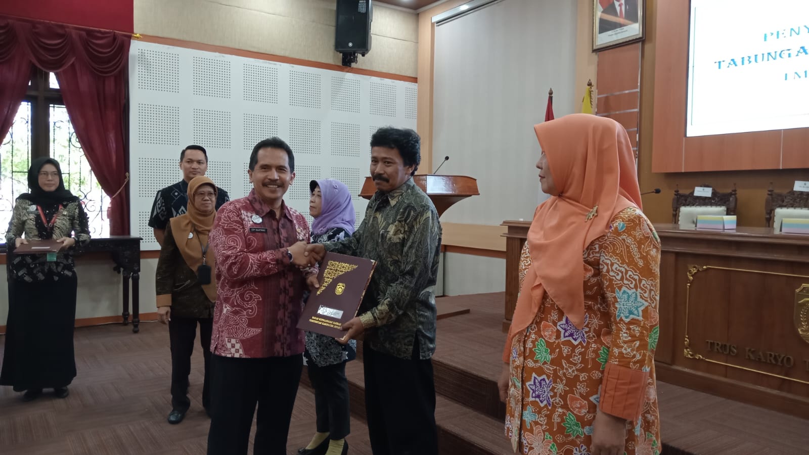 SKI|Jepara – Sekretaris Daerah (Sekda) Kabupaten Jepara Edy Sujatmiko mewakili Pj Bupati Jepara meyerahkan SK Pensiun pada para aparatur sipil negara (ASN) yang telah selesai bertugas di lingkungan Pemerintah Kabupaten Jepara. SK diserahkan kepada 35 PNS yang meliputi Pejabat Struktural 8 orang, Tenaga Bidang Pendidikan 18 orang, Tenaga Fungsional 1 orang, dan Tenaga Fungsional Umum 8 orang.