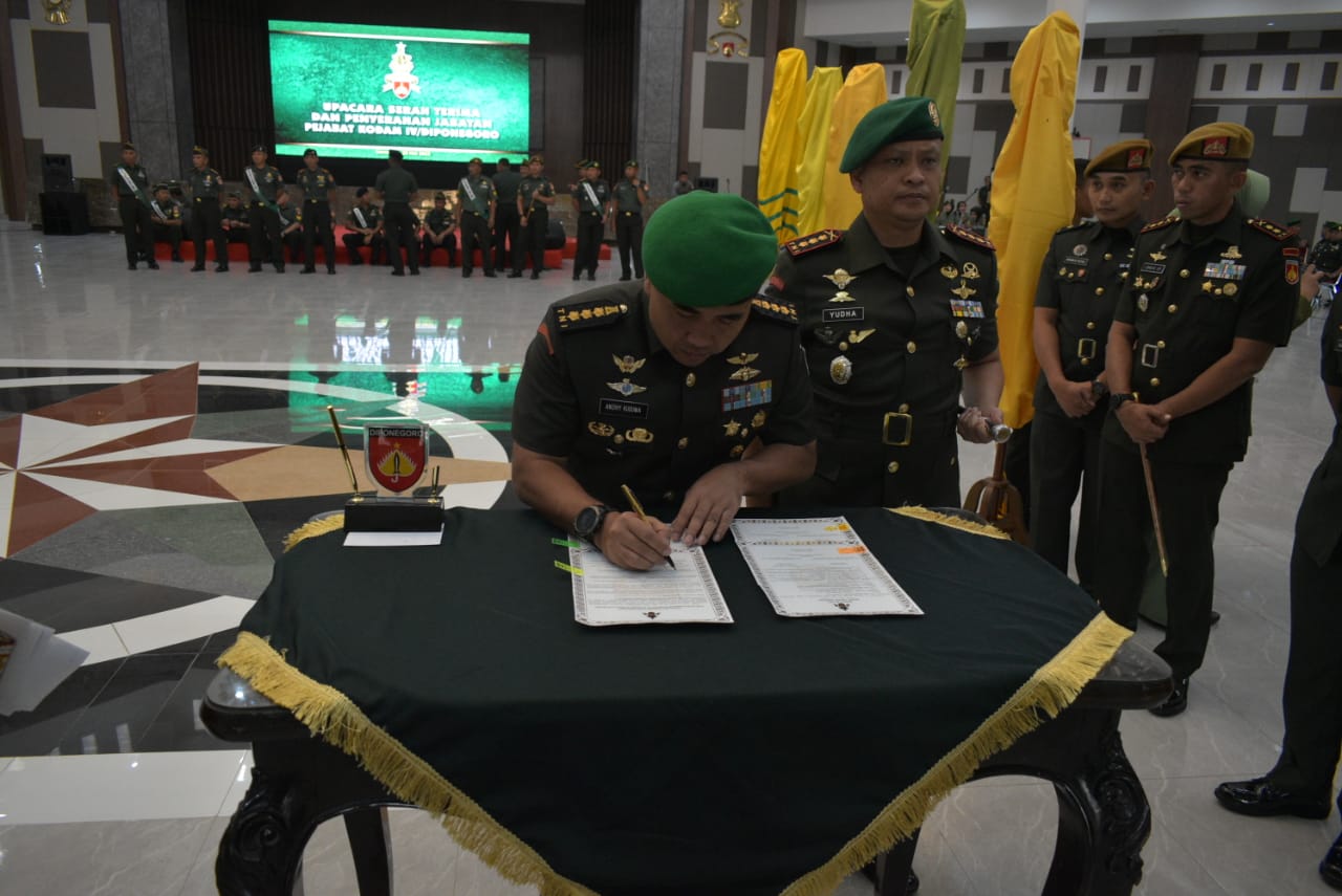 Adapun jabatan yang diserahterimakan yakni Irdam dari Brigjen TNI Adisura Firdaus Tarigan kepada Kolonel Inf Yudi Pranoto, S.H., M.M., Danrem 071/Wk dari Kolonel Inf Yudha Airlangga kepada Kolonel Czi Mohammad Andhy Kusuma, S.Sos., M.M., Asintel Kasdam Kolonel Inf Wahyu Yudhayana, S.E., M.M., kepada Kolonel Inf Bram Pramudia, S.E., Asops Kasdam Kolonel Inf Horasman Pakpahan, S.I.P., kepada Kolonel Inf I Ketut Mertha Gunarda, Kabintaljarahdam Kolonel Arm Ahen Hermanto kepada Letkol Inf Supriyo, Kainfolahtadam Kolonel Inf Drs. Hardi Dharmawan kepada Letkol Inf Moh. Ahsanul Haq, LO TNI AU Kolonel Kes Drs. Agus Prawoto kepada Kolonel Lek M.A. Harits Ariyawan, S.T., M.Si.,Danyonif R 400/BR Letkol Inf Ely Purwadi, S.I.P., M.I.P., kepada Letkol Inf Moh. Zainollah, S.Hub.Int., Danyonkav 2/TC Letkol Kav Maryoto, S.E., M.Si., M.M., kepada Letkol Kav Barid Budi Susila, S.Sos., Danyonarmed 3/NP Letkol Arm Ida Bagus Adi Purnama, S.T., M.Han., kepada Mayor Arm Winner Fradana Dieng, S.Sos., M.M.A.S., Danyonzipur 4/TK Letkol Czi Yuli Hartanto, S.E., kepada Mayor Czi Deka Ary Wijanarko, serta penerimaan jabatan Kasansidam IV/Diponegoro dari Pangdam kepadai Letkol Chb Adi Susanto.