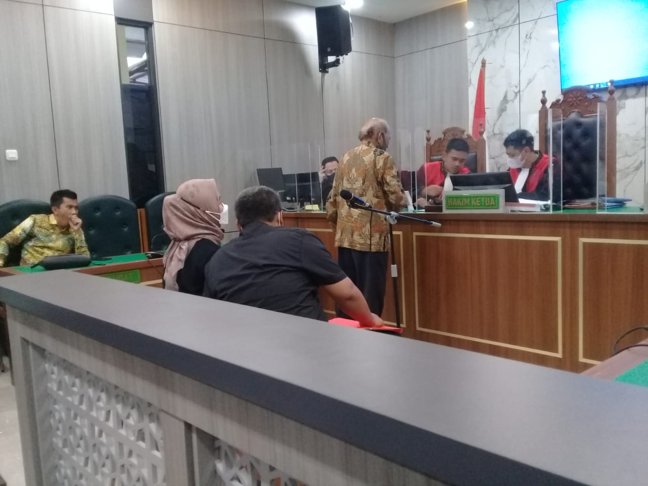 ” biarlah pengadilan ini tempat pelurusan atas lahan eks RRI, sebut Soeharijono Hadi Pranoto yang didampingi isterinya.