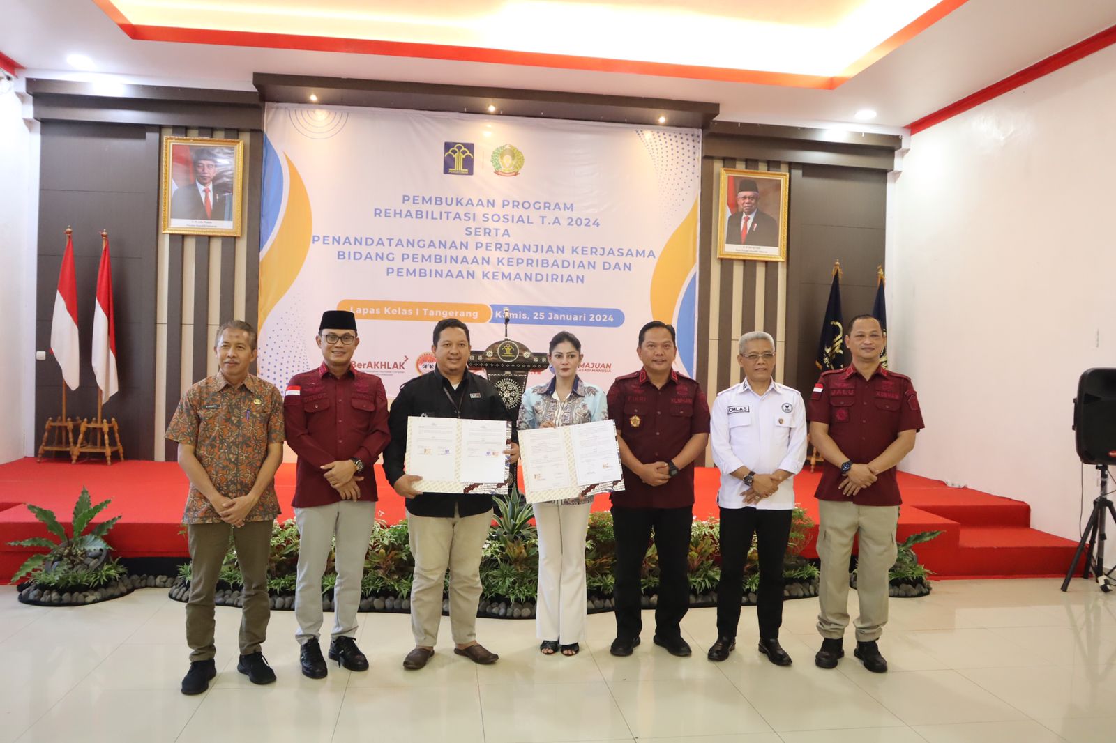 SKI | Tangerang – Lapas Kelas I mengadakan beberapa kegiatan antara lain adalah penandatangan perjanjian kerja sama, penandatanganan perjanjian kerjasama bidang kepribadian pelatihan kemandirian dan pembukaan program Rehabilitasi (sosial dan medis) yang yang dihadiri langsung oleh Kepala Lapas Kelas I Tangerang Fikri Jaya Soebing serta berbagai pihak terkait yaitu Ketua Yayasan Besakih, Ketua Yayasan Bunga Bangsa Insan Mandiri, Kesbangpol Kota Tangerang yang diwakili oleh Kabid Kesatuan Bangsa Badan Kesbangpol Kota Tangerang, dan Kepala BNN Kota Tangerang, Bertempat di Aula Lapas Kelas I Tangerang Kemenkumham Banten, kamis (25/01/24).
