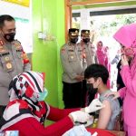 SKI | INDRAMAYU – Kapolres Indramayu AKBP M.Lukman Syarif, S.I.K., M.H., kembali meninjau kegiatan vaksin anak usia 6-11 tahun di wilayah Kabupaten