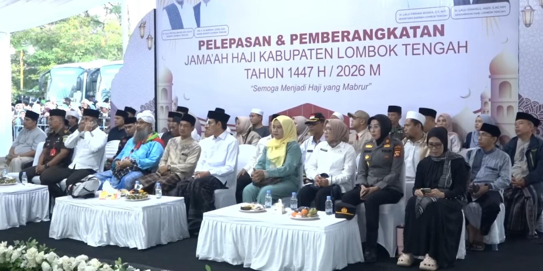 SKI | Lombok Tengah- Wakil Bupati Kabupaten Lombok Tengah H.M. Nursiah melepas ratusan Calon Jamaah Haji (CJH) Kloter 02 di Masjid Agung Praya pagi ini.