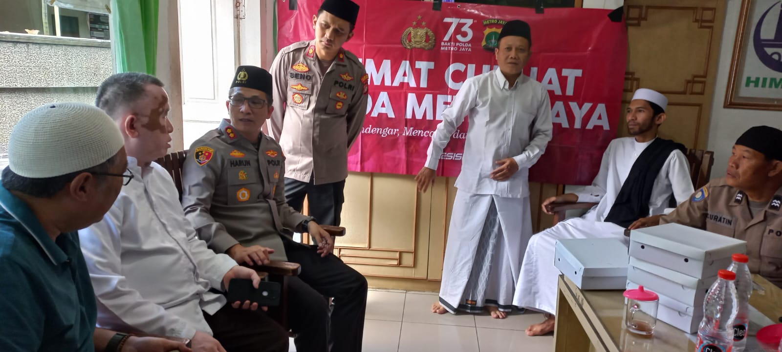 Waka Polres Metro Jakarta Selatan Akbp.Harun SH,SIK.MH didampingi oleh Kapolsek metro kebayoran baru, Kompol Tribuana Roseno,SH.SIK.MH sambangi wilayah dalam rangka Jum’at Curhat Polda Metro Jaya. Kegiatan dilakukan di Masjid Himmatul Masaakiin, JL. Bacang Rw 01 Kelurahan Kramat Pela, Kebayoran Baru, Jum’at (12/05/23).