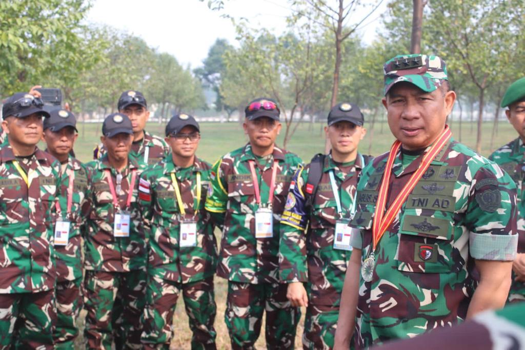 SKI | Jakarta – Wakil Kepala Staf Angkatan Darat (Wakasad), Letjen TNI Agus Subiyanto, keluar sebagai juara pada Novelty Shot Exhibition, pada lomba khusus yang digelar pada pembukaan AARM ke-30 tahun 2022 di National Military Training Center, Hanoi, Vietnam, Minggu (6/11/2022).