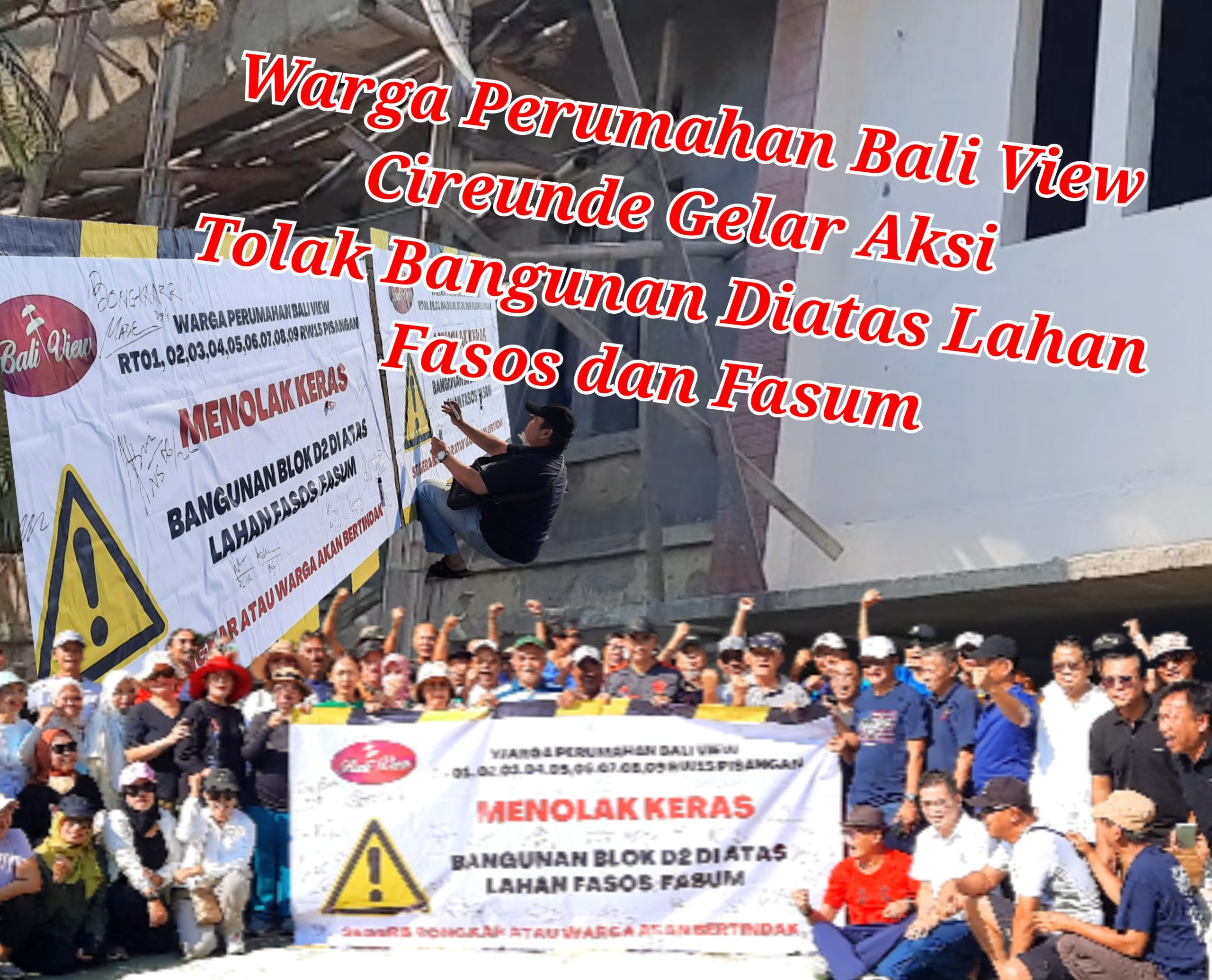 Dalam aksi warga yang dilakukan pada minggu 08 September 2024, menuntut agar pihak yang membangun di atas lahan Fasos dan Fasum segara membongkar dan mengembalikan fungsi fasos dan fasum sebagai sarana Ruang Terbuka Hijau (RTH).